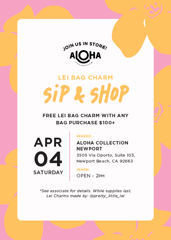 Shop ALOHA Collection this weekend and receive a free Lei Bag Charm with any purchase of $100+