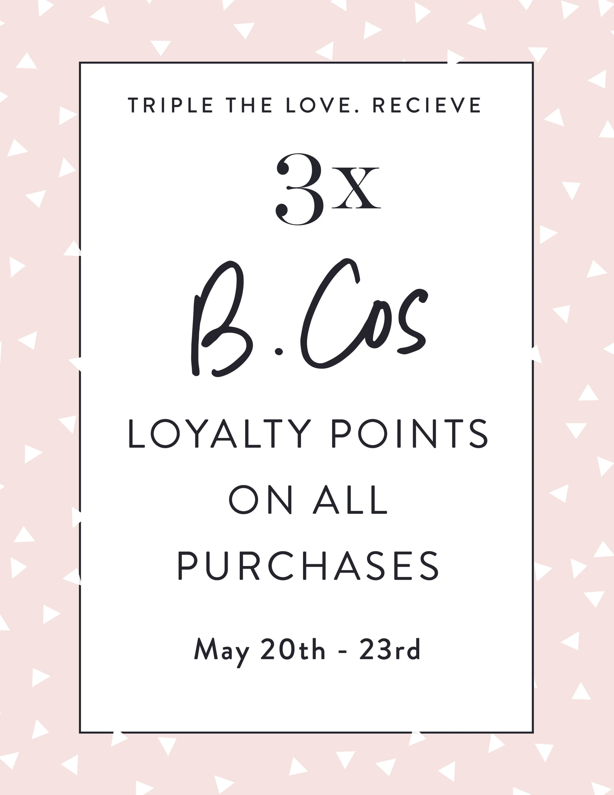 Enjoy triple B. Cos loyalty rewards points for 4 days only at Cos Bar.