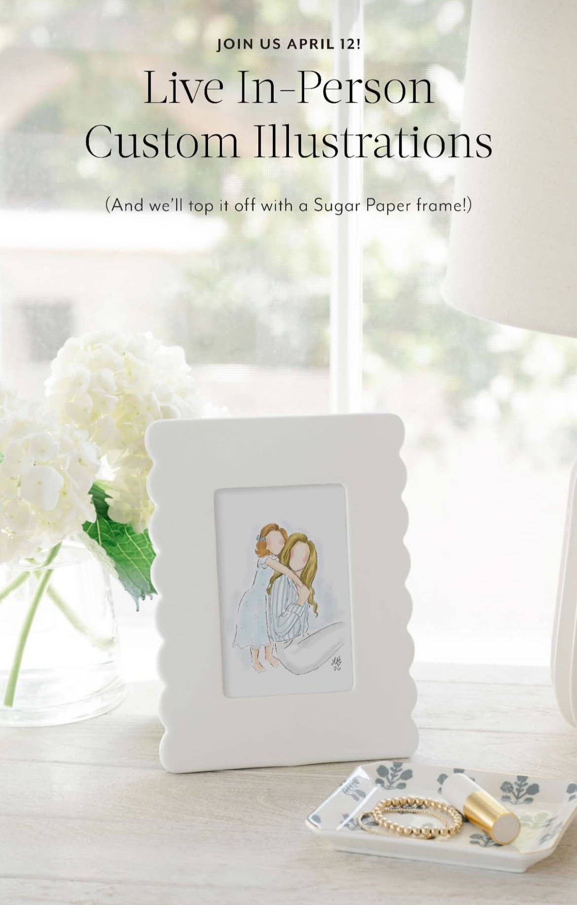 Sugar Paper is hosting live illustrator, Lizzie Bork, in their shop this Sunday! Lizzie will create custom drawn illustrations in just 10 minutes. Starting at $85, your illustration includes a beautiful Sugar Paper frame.