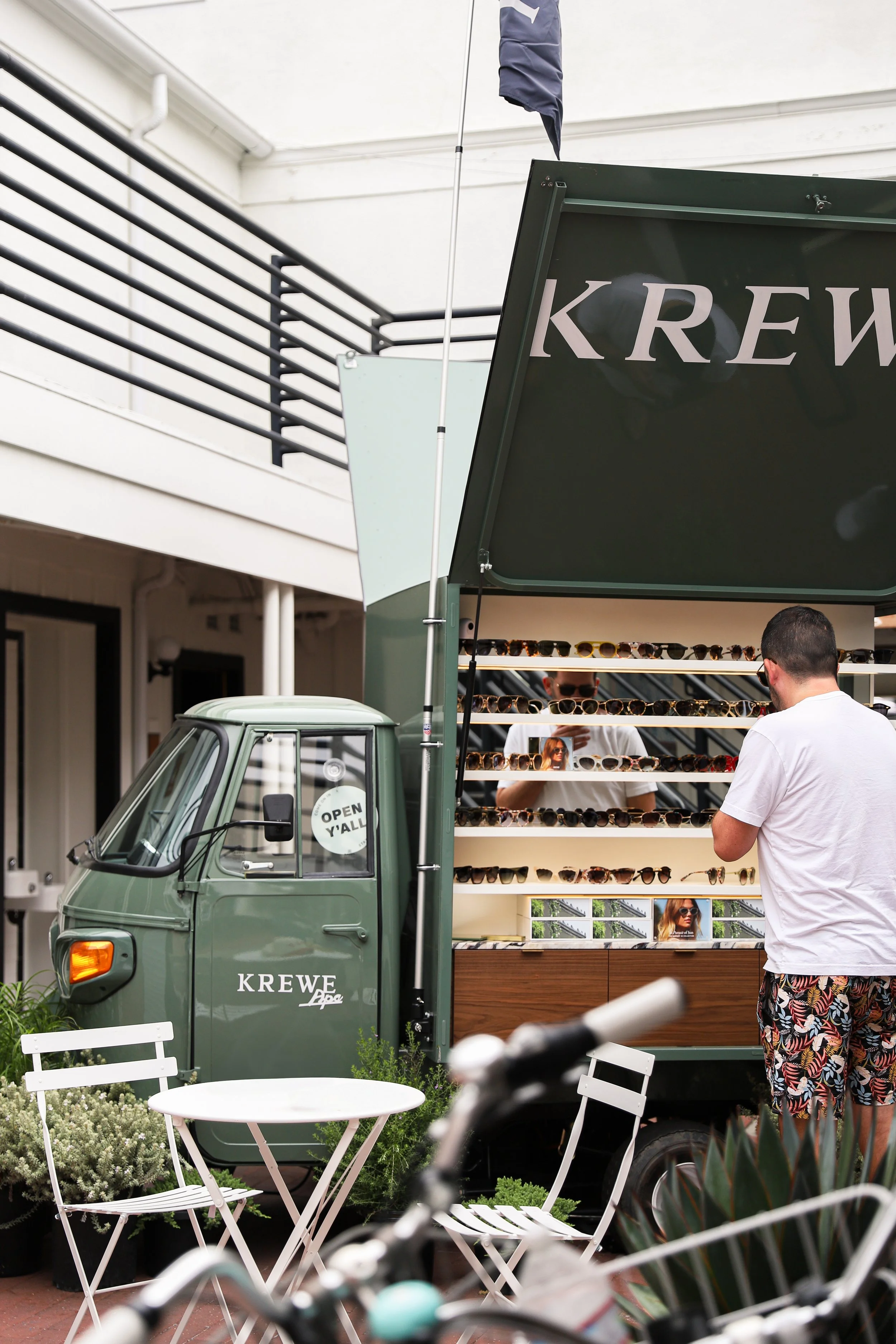 KREWE, a New Orleans–based brand, focused on handcrafted, design forward frames is now on the West Coast. Their signature Italian Piaggio Apé has found a new home at Lido Marina Village. KREWE is bringing their bestsellers and brand-new arrivals straight to the coast.